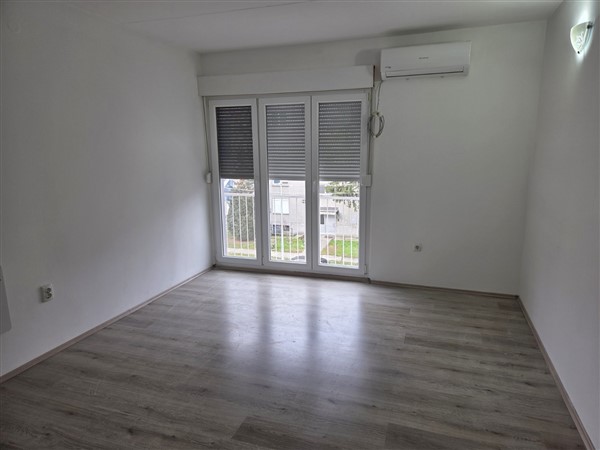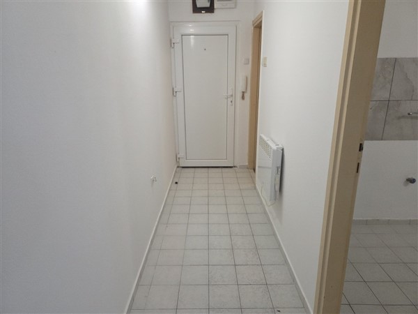 Stan na 2. katu koji se sastoji od hodnika, kuhinje s blagovaonom, kupaonice, ostave i sobe. Stolarija je PVC. Na podovima su laminati i pločice. Grijanje je na struju. Klima.